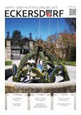 AMTS- UND MITTEILUNGSBLATT ECKERSD RF 01. APRIL 2023 DIGITAL LESEN 03 Aktuelles 10 Region 12 Vereine AUS UNSEREM RATHAUS UNSER SCHÖNES ECKERSDORF NEUES AUS DER VEREINSWELT Neues aus dem Gemeinderat Kennen Sie das Gartenkunstmuseum Schloss Fantasie Donndorf News unserer Verbände und Vereine